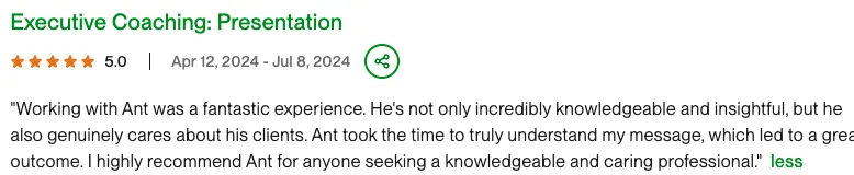 I’ve trained entrepreneurs, executives, and experts whose talks have closed multi-million-dollar deals, sparked movements, and put their names in rooms they’d never entered before.